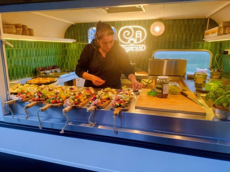 Opgerold serveert (vanuit een Adria 325) de lekkerste gerechten op uw bedrijfsfeest, bruiloft of ander evenement. Van lunch tot diner tot borrelhap.